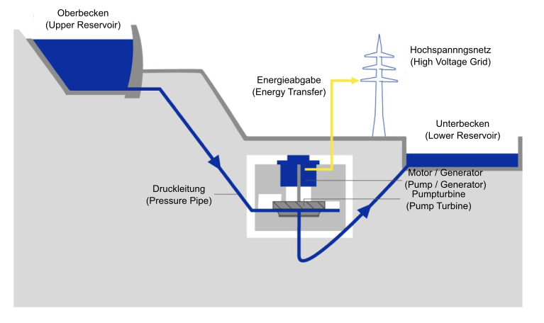 Pumpspeicherkraftwerke nutzen das hohe Gefälle und die Speicherkapazität von Seen. Sie werden nicht nur zur Energiegewinnung, sondern auch zur Energiespeicherung genutzt. Bei einem Überangebot an Strom wird Wasser auf ein höheres geodätisches Niveau gepumpt und dort gespeichert. Wird Strom im Netz benötigt, kann das Wasser der Turbine zugeführt werden. Als nachhaltig regenerativ kann bei diesen Kraftwerken nur der Anteil an der Stromerzeugung gelten, der aus ihrem natürlichen Zufluss generiert wird. Solche Anlagen stellen 29 % aller Wasserkraftwerke im Alpenraum dar.
